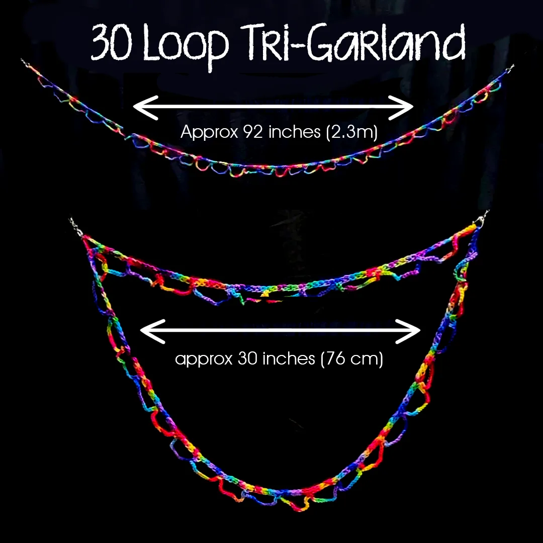 Take your bubble-making to the next level with our 30 Mini-Loop Tri-Garland, specially designed for very windy conditions! Just like using a net, these loops create an explosion of golf ball sized, shimmering bubbles while using less bubble solution—perfect for making the most of gusty days.