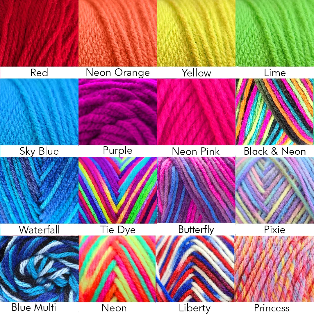 Waterfall, Red, Neon Orange, Yellow, Lime, Sky Blue, Purple, Neon, Neon Pink, Mint, Tie Dye, Butterfly, Pixie, Blue Multi, Liberty, Black, Princess